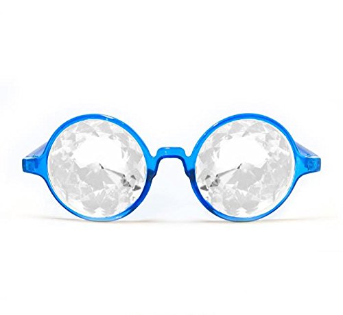 These lenses are set in an exclusive blue transparent frame and each pair comes with a free microfiber cleaning case. As with all of our products, Transparent Blue Kaleidoscope Glasses with Clear Kaleidoscopic Lenses are painstakingly made by hand, assuring that each pair of glasses is of the highest quality.