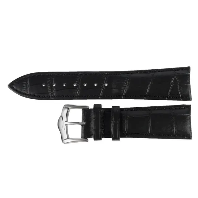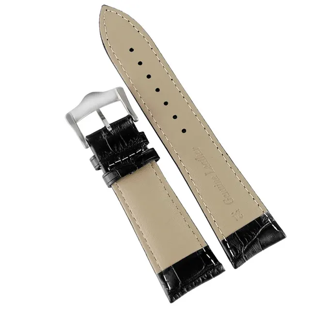 | [해외]높은 품질 24 미리메터 블랙 정품 가죽 손목 시계 비즈니스 시계 실버 버클 |