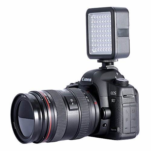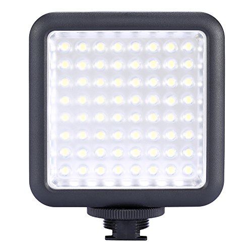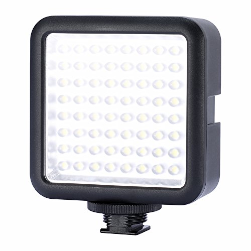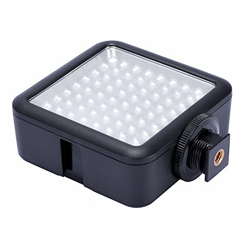 - Feature : LED64 video light consist of 64 LED bulbs with a dimmer knob. / Interlocking design supports multi-lamp rapid splicing to achieve different combinations. / Excellent for macro photography, video capture up to provide adequate and stable light source. / High brightness, color temperature accurate for low light levels in different situations. / Easy to install, lightweight and portable, heat a small, environmentally friendly and durable. Universal shoe mount fits major brands of cameras & camcorders.