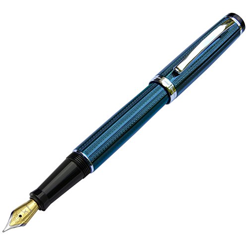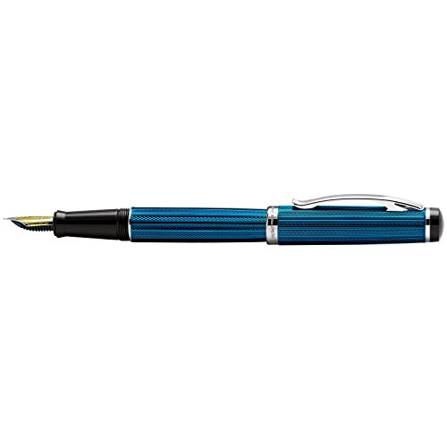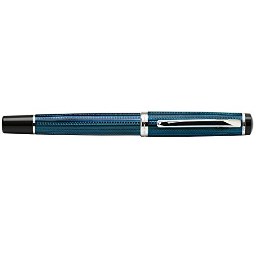 -. Title : Xezo Brass Fine Fountain Pen in French Blue Metallic Color, Diamond-Cut Engraved, Platinum Plated, Serialized (Incognito Blue F)