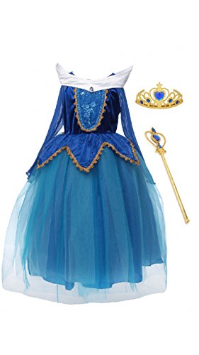 Aurora Puffy Dress, Tiara and Wand, 6-7 Years, Pink.