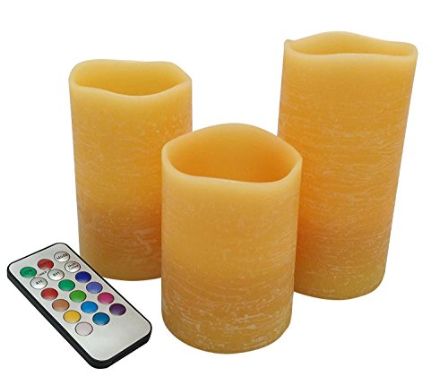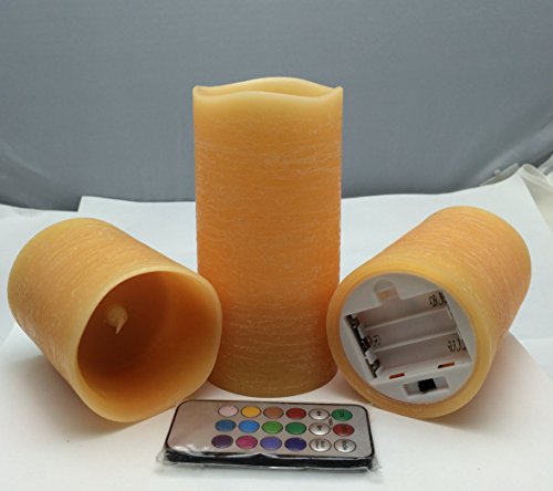 - --Perfect For Your Halloween Parties, Thanksgiving Table and Christmas Decor! THREE WAX LED Candles per set that measure 4”, 5", 6" Tall and 3" Wide, 3AAA batteries required-not included