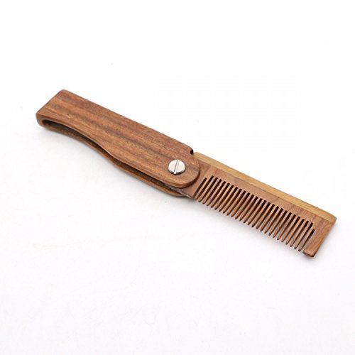 HUELE Pocket Size Hair and Beard Folding Wooden Comb Anti-Static Wooden Styling Comb for Men