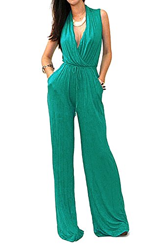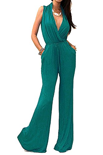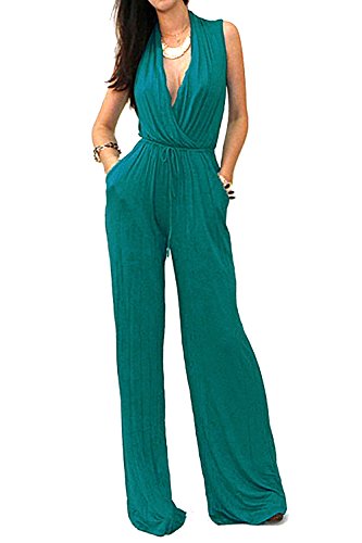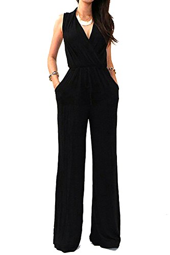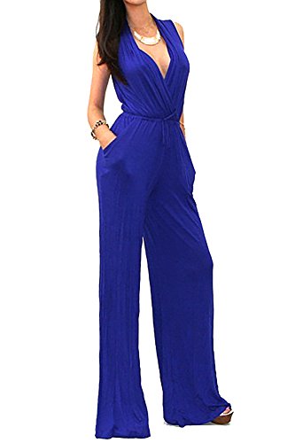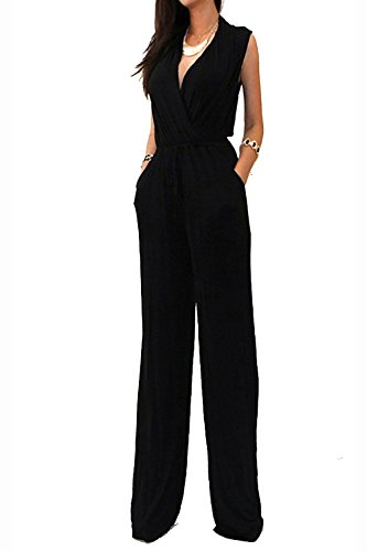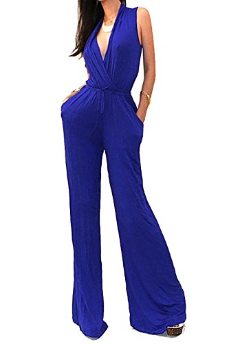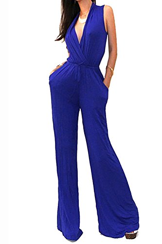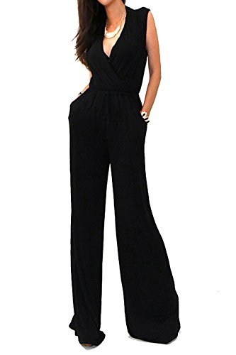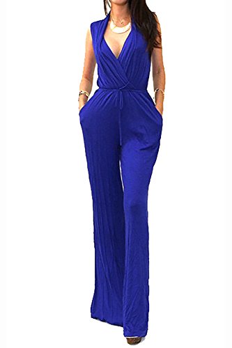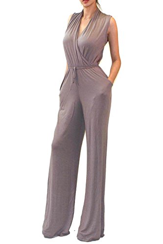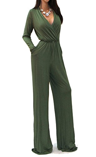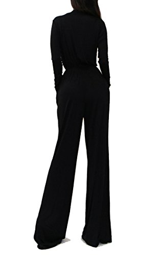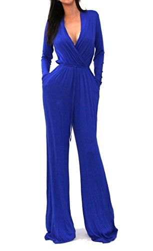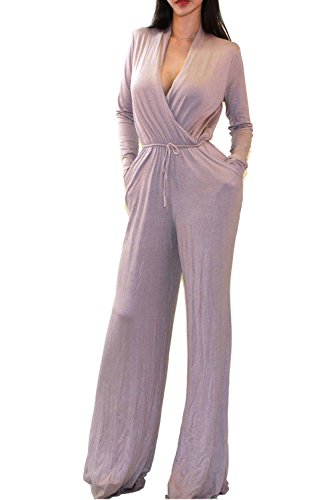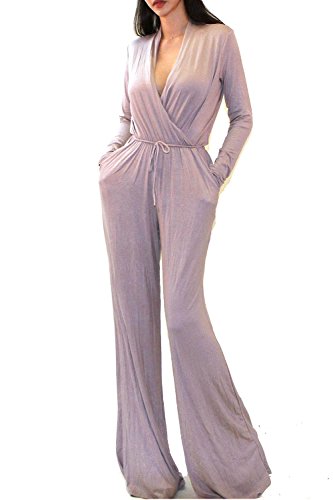 | VIVICASTLE Women's Sexy Wrap Top Wide Leg Long Sleeve Cocktail Knit Jumpsuit |