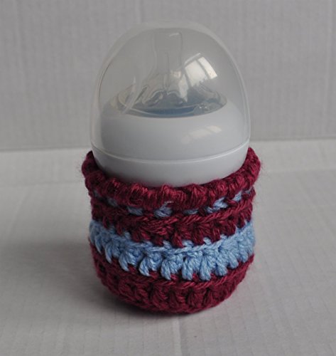 Handmade Crochet striped baby bottle cover, made for Avent Classic/natural Newborn 125ml bottle. These bottle cozy will keep the milk insulated, they also have elastane fitted so it grips on to the bottle for a snug fit. This would make a great gift for a mother-to-be as a babyshower gift. Care Instructions: -Hand washable, machine washable at 40 degrees, lay flat to dry. 95% Acrylic 5% Elastane. Please note that the bottle is not included.