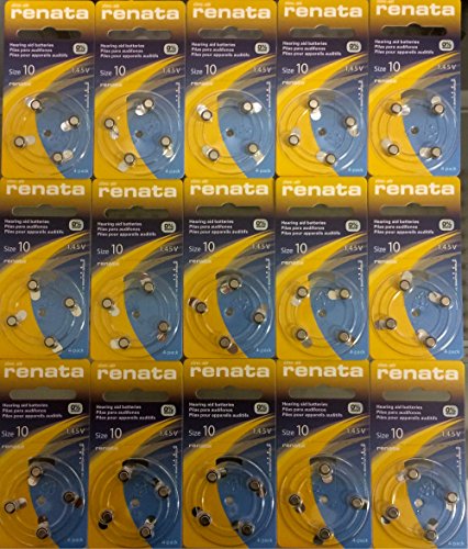 -. Brand : Renata -. EAN : 0706148500104 -. Feature : Renata hearing aid batteries are ISO 9001:2008 and ISO/TS 16949 certified. / Ideal for analog, digital and ultra high power hearing aids. / Longer battery life, thanks to an optimally high and constant voltage. / Completed stringent "high power pulse tests" for battery performance analysis proposed by the IEC. / Top ranked performance at a competitive P.R.Ice. -. Label : Renata -. Manufacturer : Renata -. MPN : 10 -. PackageQuantity : 1 -. PartNumber : 10 -. ProductGroup : Health and Beauty -. ProductTypeName : PERSONAL_CARE_APPLIANCE -. Publisher : Renata -. Size : 10 -. Studio : Renata -. Title : 60 Renata Maratone Hearing Aid Batteries Size: 10 -. UPC : 706148500104