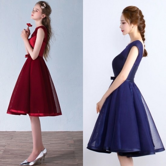 パーティードレス ひざ丈 ワンピース ウエストリボン フレア メッシュレース バックコンシャス 大人 可愛い 上品 お呼ばれ drgz2305