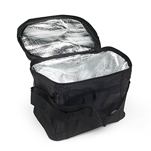 -. Feature : Made of the 300D polyester for extra durability and toughness; for school, work, or travel / Zipper Enclosure, Fully Insulated - Keeps Hot/Cold For Hours! / Light Weight & Easy to Clean - Wipe Down or Hand Wash Cold / Hang Dry! / Size: 10.5L x 9.5H x 7W (inches) / Keep warm: pizza and other cooked food (2-3 hours) Keep cool: can store iced fruit and drinks, breast milk, seafood, etc. Note: Long-distance keep cold or fresh goods, need to put ice around those goods