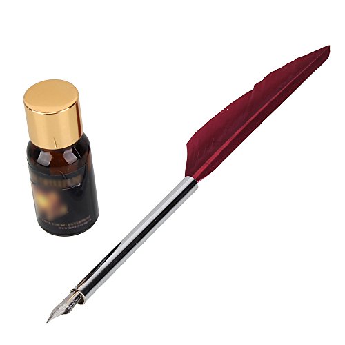 -. Title : BQLZR Retro Antique Dip Pen Wine Red Goose Quill Feather with Ink bottle For Writing