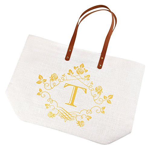 ElegantPark T-Initial Monogram 100% Jute Tote Bag with Handle and Interior Pocket