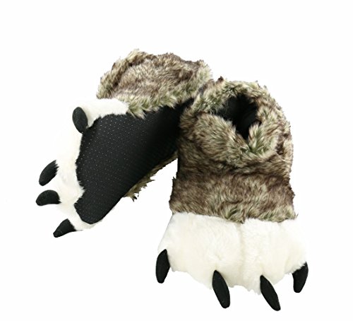 Keep your little pup's feet warm and cozy in these polyester slippers featuring wolf paws and claws. Machine washable with a slip grip sole bottom, these slippers are a must-have for tired, tromping toes. So, when life gets a little crazy...paws for a moment and tap into your kid's wild side! Sizes: X-Small (5-8 Kids), Small (9-11 Kids), Medium (13-3 Kids)Feature