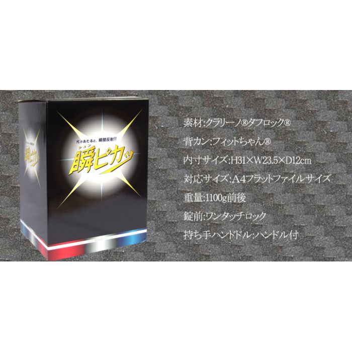상품 상세 소재 클라리노®터프 록®배캔 피트상®내치수 사이즈31.0×23.5×12.0cm대응 사이즈A4플랫 파일 사이즈 중량 약1100g전후 특징1:반사재가 근사하다