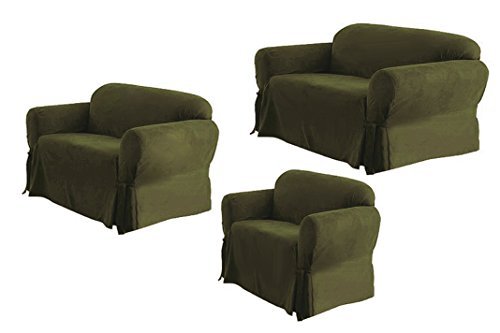 -. Title : SOLID SUEDE Couch Cover 3 Pc. slipcover Set = Sofa + Loveseat + Chair Covers / Slipcovers 3 Pcs SET - Sage color