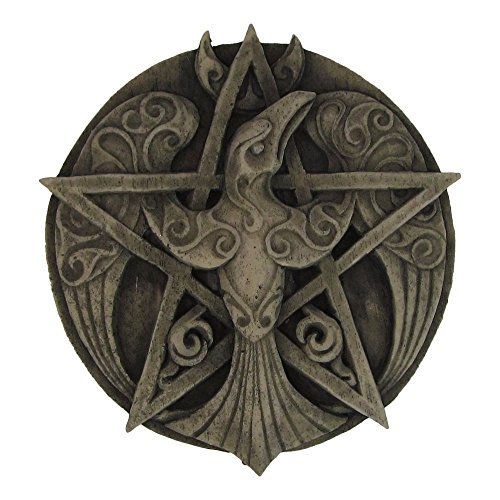 Crescent Raven Pentacle Wall Plaque Stone Finish