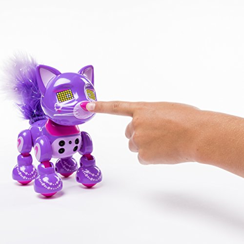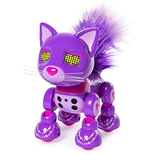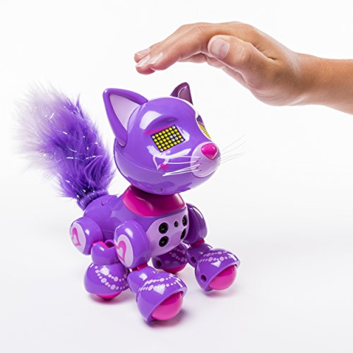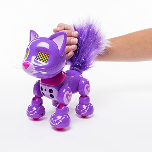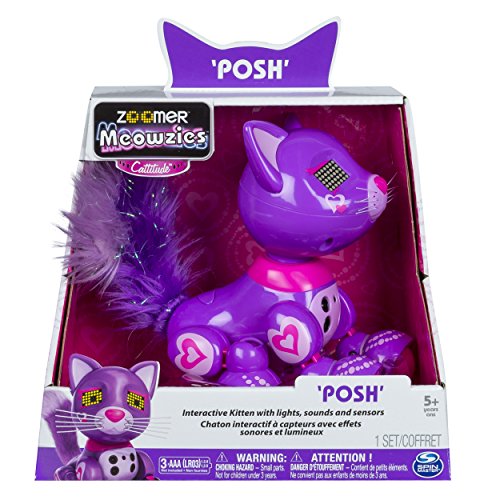 Zoomer Meowsies welcomes the new Cattitude Collection with sparkly fluffy tails and new interactive games. Posh, the stylish Meowzy features poseable legs, wheels on the bottom of their feet so you can roll her around, responds to your touch, has light up eyes and loves to play games – you’ll be smitten with this robotic kitten. The more you play with her, the happier she becomes! Posh has special sensors on her head, back and chest so she knows when you're petting her. Her interactive LED eyes light up telling you exactly how she's feeling. Wave your hand in front of her chest sensors to watch her LED eyes follow you. And if you're in the mood to play, you've just met the right kitten! With interactive games like ‘Mouse Chase’ and ‘Meow Hero,’ and Music Mode, Posh can't wait to show you everything she can do. She even has two special tricks such as saying “I love you” and giving you kisses. Zoomer Meowsies also interact with each other. Collect Chic, Lux, Runway and Posh (each sold separately) sync two of them up, and they will interact with each other by playing peek-a-boo, having a hissing contest, or just singing and playing. Bring home your very own personal kitten, Posh! Zoomer Meowzies are so a-MEOW-sing and are the purr-fect gift for children ages 5 and up.Feature