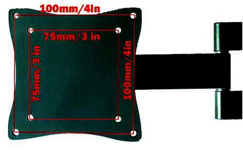 -. Feature : VESA 100x100mm, 75x75mm compatible with weight less than 33 lbs (10 kg) / Retracts to 1.6" to save space; Extends up to 14" from the wall / Fits most 15", 16", 17", 19", 20" and some up to 27" (check VESA and weight) / Tilt, swivel and extend for maximum viewing flexibility: tilting 90 degrees up or down, swing 180 degrees left and right / Common hardware and user manual included in the package
