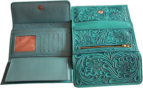 Handmade Womens Wallet. Rich and Deep Hand Tooling. Checkbook Holder attachment