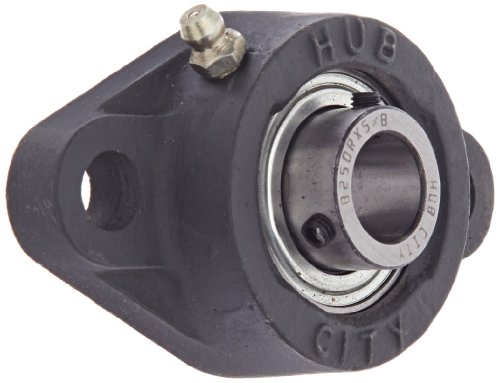 Hub City FB260URX5/8 Flange Block Mounted Bearing, 2 Bolt, Normal Duty, Relube, Setscrew Locking Collar, Narrow Inner Race, Cast Iron Housing, 5/8" Bore, 1.303" Length Through Bore, 3" Mounting Hole Spacing