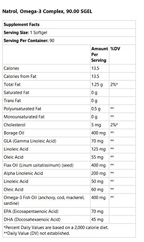 ReleaseDate : 2012-09-21 Studio : NATROL Publisher : NATROL Binding : Health and Beauty Product Description This unique combination of essential fatty acids (EFAs) helps support numerous functions in the body. The fatty acids in this product are derived from both plant and marine dextrose. Discover the benefits of Natrol Omega-3 Complex - a blend of complex fatty acids that are important for promoting overall health and well-being. A scientifically optimized blend, it includes omega-3 fatty acids derived from fish, flax seed and borage . Natrol Omega-3 Complex helps support heart and cardiovascular healt. Natrol makes this product in the U.S.A.! 0