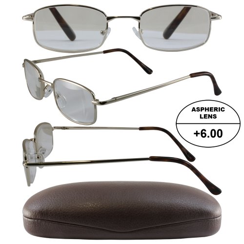 -. Brand : READERZ -. EAN : 6935743715147 -. Feature : Diopter: 6.0X / Lens: Aspheric Clear / Frame Color: Gold / Case Color: Brown / While these glasses cannot replace a prescription from an eye care professional, they are great quality if you know what magnification you need. -. Label : Readerz -. Manufacturer : Readerz -. MPN : 6GDREADER -. PackageQuantity : 1 -. PartNumber : 6GDREADER -. ProductGroup : Automotive Parts and Accessories -. ProductTypeName : POWERSPORTS_VEHICLE_PART -. Publisher : Readerz -. Studio : Readerz -. Title : Men's High-Powered Reading Glasses: Gold Frame and Brown Case +6.00 Magnification Aspheric Lenses
