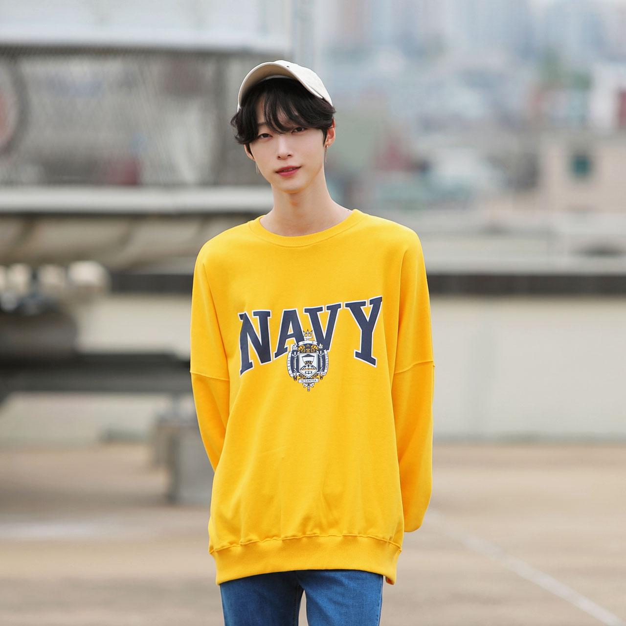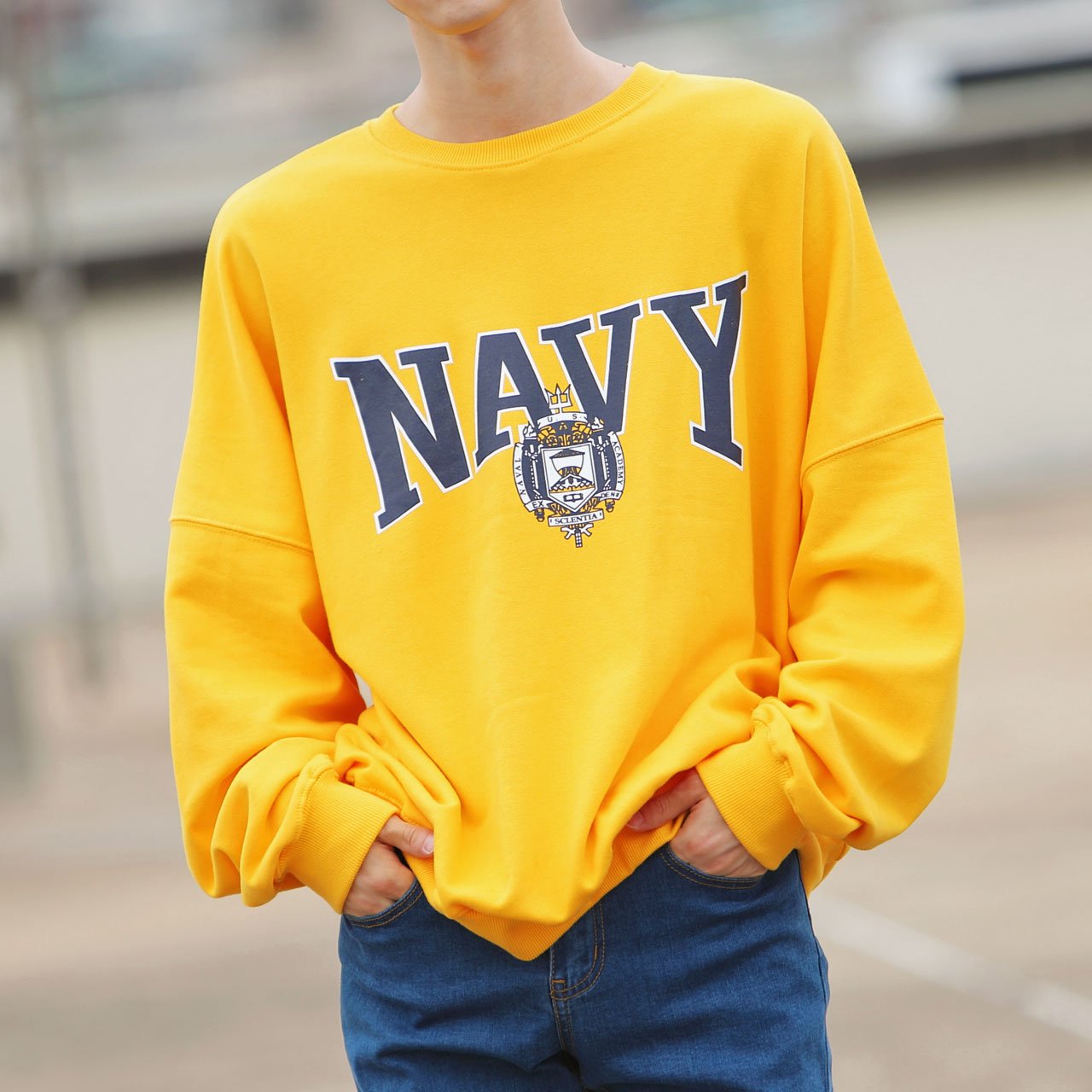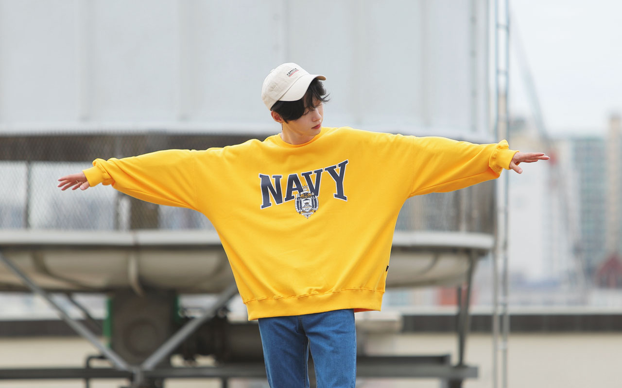 네이비 박스핏 맨투맨