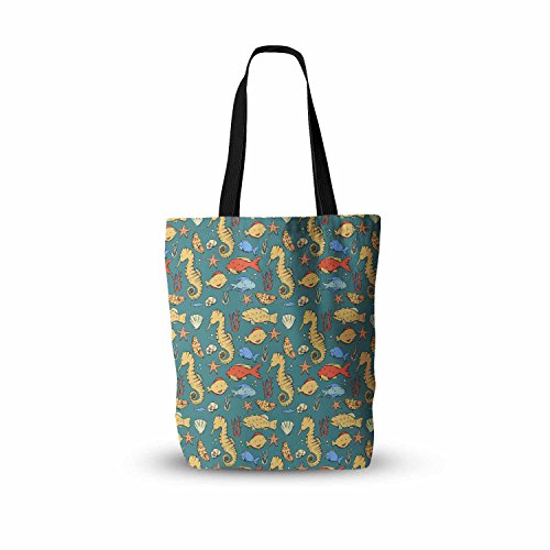 KESS InHouse Stephanie Vaeth "Under The Sea" Blue Yellow Illustration Everything Tote Bag, 13" x 13", Multicolor