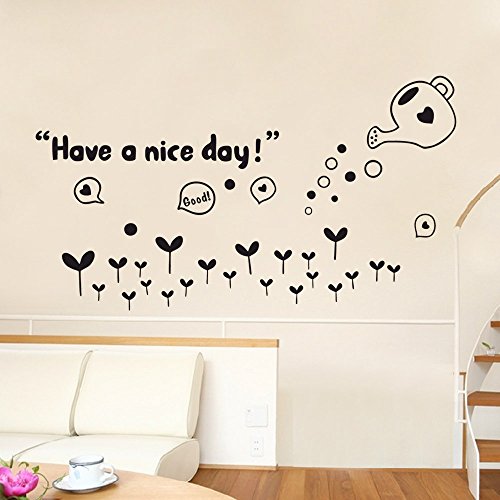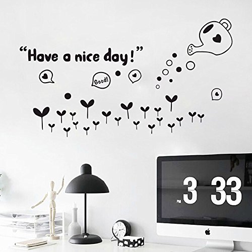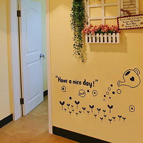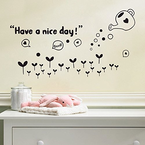 BIBITIME Black Watering Growing Grass Wall Decals Sayings Quotes Have a nice day Vinyl Sticker for Nursery Bedroom Kids Room Decor
