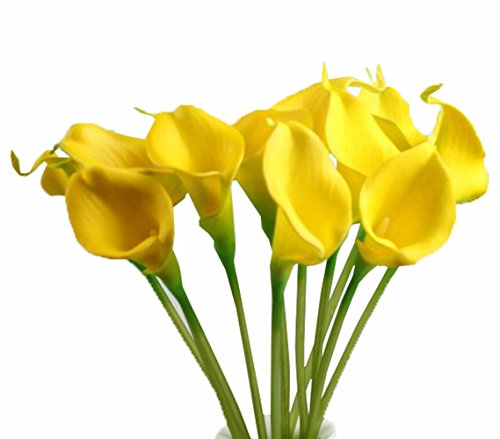 Package inclue:10pcs Yellow Artificial Calla Lily Bouquet with one Keyring