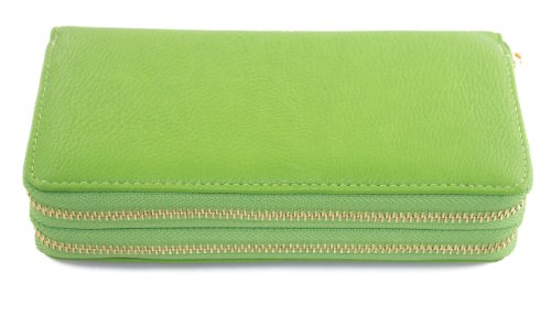 Women's Double Zip Around PVC Leather Wristlet Clutch Organizer Wallet