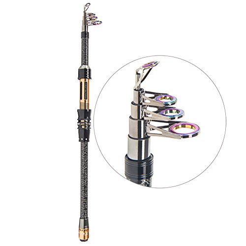 PORTABLE - The telescopic fishing rod is portable, and closed length design is convenient carrying around, easily fits in car trunk, boat hatch or backpack. You can travel to your favorite fishing spot for enjoyable fishing.