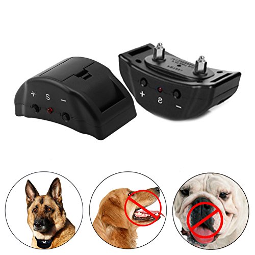 ?Features: No bark collar High volumn beep Sound and Static shock training Adjustable Nylon strap (18cm to 71cm) suitable for large, medium and small dog Easy and convenient to test the functionality and sensitivity by air blowing More steady and durable. 7 levels of sensitivity adjustment by " " and "-" buttons to suit for different dogs Patented design, patent no. 201230508689.0 CE RoHS certificate Effective Fit(10 to 120 pounds dogs). ?Specifications: Materia:Plastic Size:7*3cm/2.76'*1.18' Battery: 1 x 4LR44 6V Battery(battery not included) Color:Black Quantity: 1 set ?Note: 1.Transition: 1cm=10mm=0.39inchh 2.Please allow 0-1cm error due to manual measurement. pls make sure you do not mind before you bid. 3.Due to the difference between different monitors, the picture may not reflect the actual color of the item. Thank you! ?Package includes: 1 * No bark collar 1 * Nylon strap 1 * Test Bulb 1 * English User Manual 2 * Long Metal Probes 2 *Short Metal Probes 0