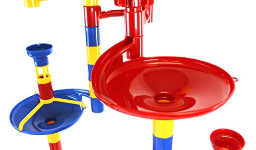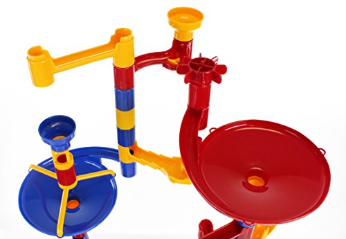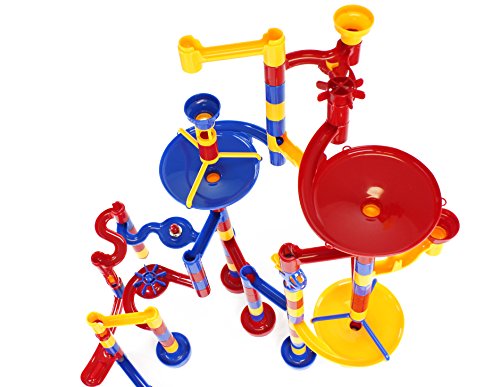 -. Feature : Kids have mega fun with Galt's Mega Marble Run / With this 100-piece structure, kids can create complex marble runs with staircases, bells, wheels and more / Includes a variety of chutes, tubes, curves, paddle wheels and 20 marbles (see product description for complete list of contents) / Suitable for children ages 4-9 / Galt products are quality controlled and meet all American, Canadian, British and European standards for toy safety