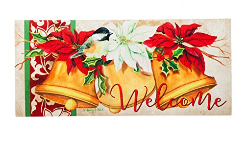 EVERGREEN CHRISTMAS BELLS DECORATIVE MAT INSERT, 10 X 22 INCHES