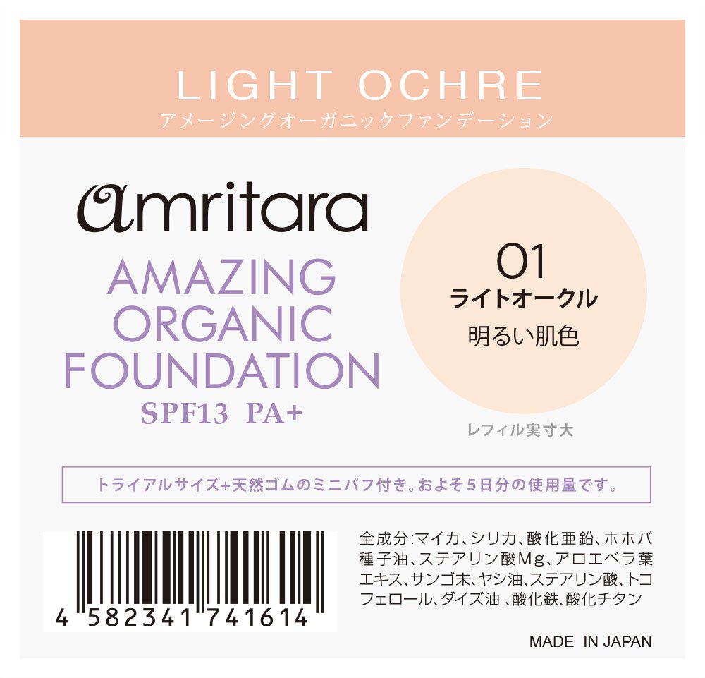 Amuritara Amazing Organic Foundation trial 01 Light Ochre (SPF 13PA +)