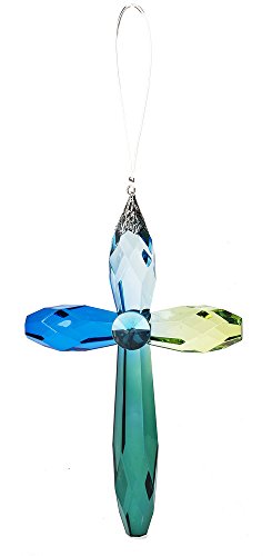 Rainbow Cross Crystal Expressions 7 Inch Acrylic Hanging Ornament-Blue/Turquoise