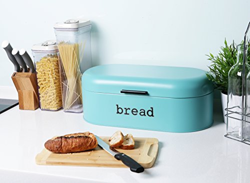 Large Teal Bread Box for Kitchen Countertop - Bread Bin Storage Container with Lid for Loaves, Pastries, and More - Retro / Vintage Inspired Design - 17 x 9 x 6 Inches