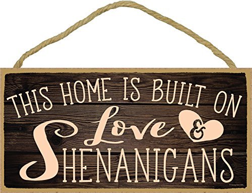 This Home Is Built on Love and Shenanigans - 5 x 10 inch Hanging, Wall Art, Decorative Wood Sign Home Decor