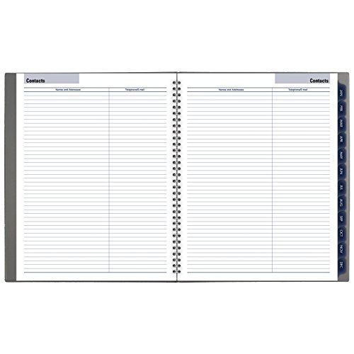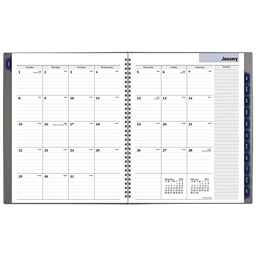 -. Feature : Monthly planner is tabbed one month per two page spread with ruled blocks and notes space / Past and future months reference; Special pages: Metric conversion chart, three year reference calendar, contacts, holidays and notes / P.R.Inted on quality paper containing 30% post-consumer waste; assorted color (black or gray) color selected may vary