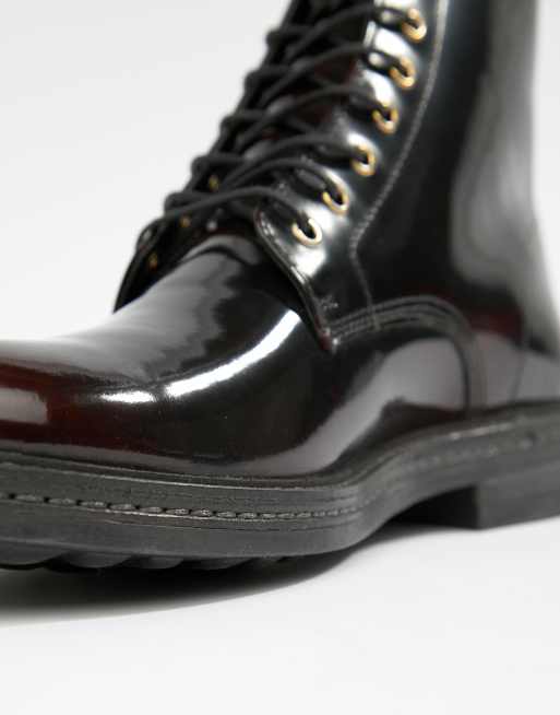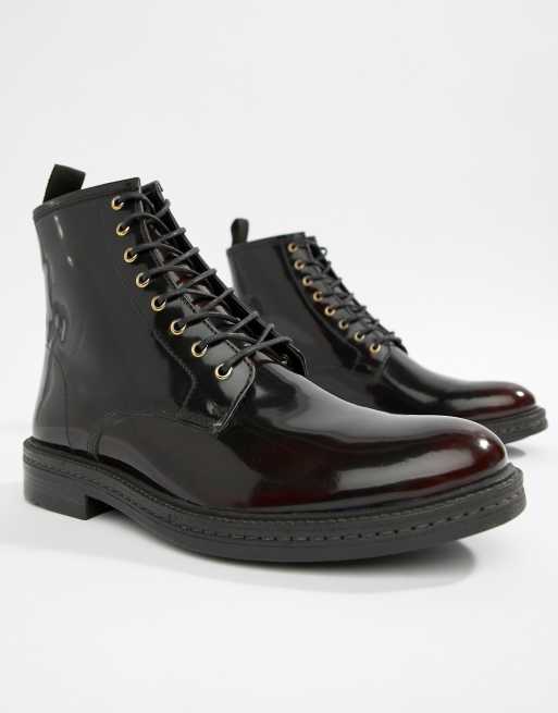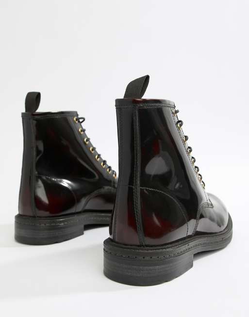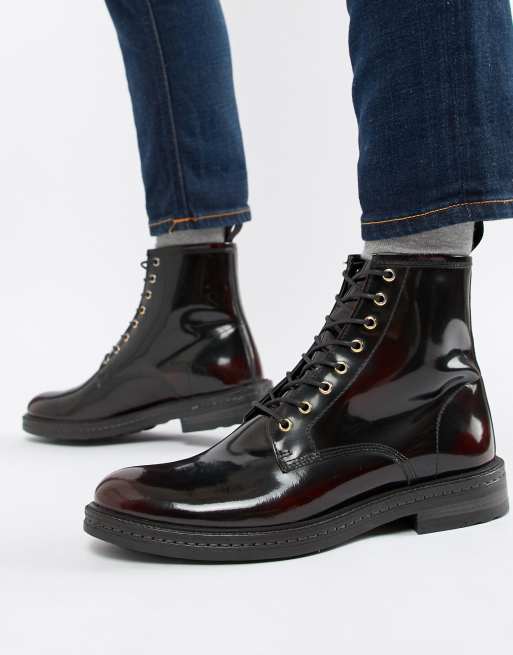 WALK London Wolf lace up boots in high shine burgundy