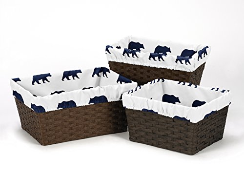 Sweet Jojo Designs 3-Piece Navy Blue and White Fits Most Basket Liners for Big Bear Collection