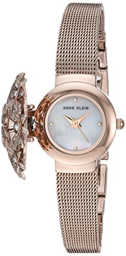 Swarovski crystal accented floral design dial cover; mother-of-pearl dial with rose gold-tone hands and markers