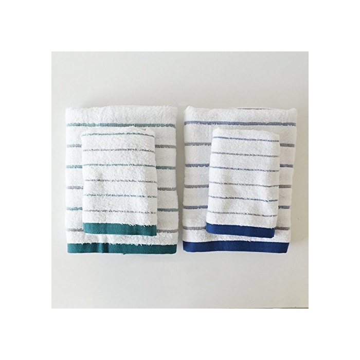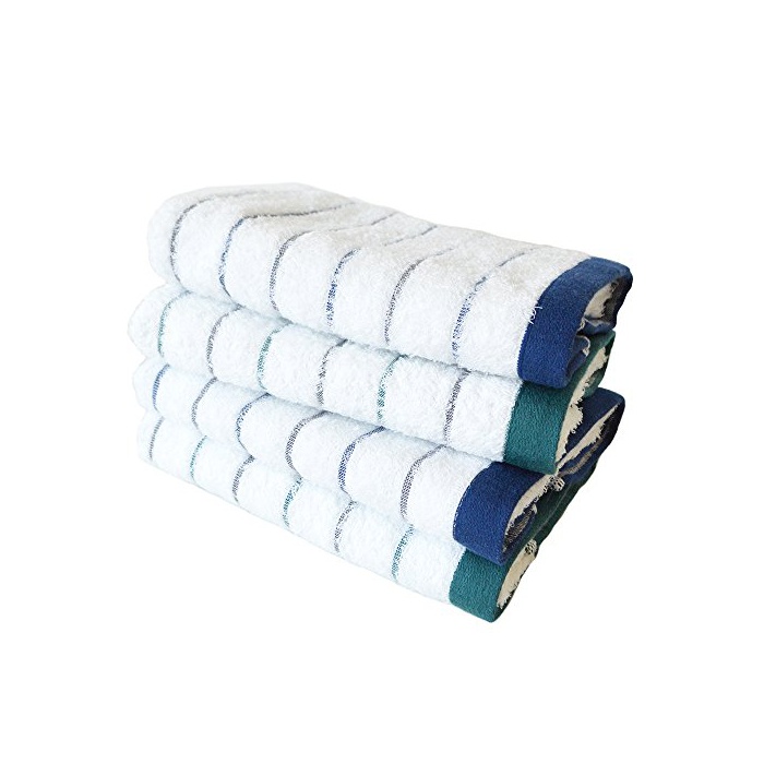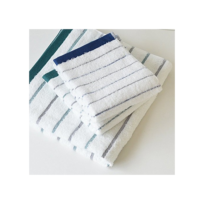 tramper 런 TRANPARAN 이마바리 타올 GR보더 페이스 타올 4 매세트 빠르 건 (네이비×그린) grF