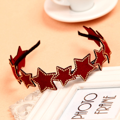 Korean men leather rivets beautiful stars aligned size pentagram headband hair band hairpin head