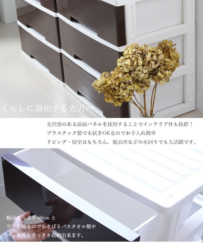 ◆商品仕様◆・サイズ(約)外寸 1個:幅60×奥行40×高さ62cm配送梱包サイズ62×42×49cm生産国:日本お届け仕様:組み立て式 【ピックアップポイント】・たっぷり収納できるワイド幅。セーターやタオルなどかさばる衣類もスッキリ収納!コロ付きで移動楽々。2段までスタッキング可能でスペースの有効活用にも!!光沢のある全面パネルを採用し、インテリア性も抜群です。ご注意事項・お届け先が沖縄県、離島の場合はご注文をお受けすることができません。・ご注文を承った場合はご連絡後キャンセルのお手続きをさせていただきます。・注文の混雑状況などにより前後する場合がございます。・ご利用の端末により色が若干異なって見える場合がございます。