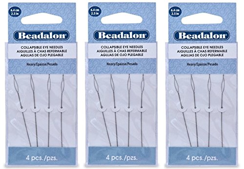 3 Packs - Beadalon Collapsible Eye Needles 2.5" Heavy - 4pcs/pk - Total 12 Needles (in Rigid Pak TM mailer)