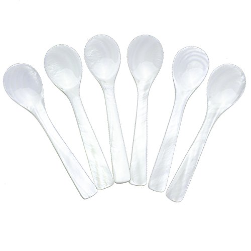 Marycrafts Set of 6 White Mother of Pearl MOP Caviar Spoons
