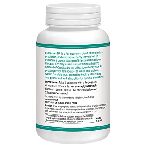 -. Binding : Health and Beauty -. Feature : Intestinal and colon cleanse / Microflora balance and better digestive function / Supports overall metabolic health, and nutrient absorption / Controls overgrowth of Candida yeast and other parasites / Supports gastro-intestinal health with 100% vegetarian formula -. Label : ASTEnzymes -. Manufacturer : ASTEnzymes -. ProductGroup : Health and Beauty -. ProductTypeName : HEALTH_PERSONAL_CARE -. Publisher : ASTEnzymes -. Studio : ASTEnzymes -. Title : Floracor-GI Candida Yeast Cleanse, ProBiotic And PreBiotic Enzymes