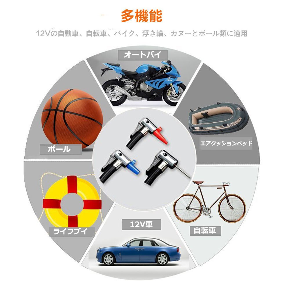 Multi-function: DC 12v air compressor can be used for filling large cars, bicycles, motorcycles, RVs, SUVs and ATVs, but also for balls, floating rings and various balls.