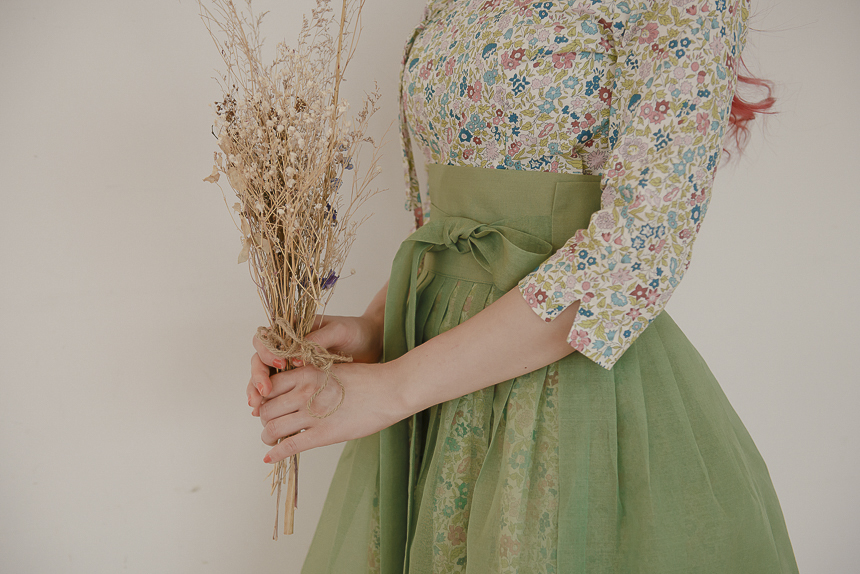 꽃닮 철릭원피스는 치마부분도 일반 셔링이 아닌 고급 손주름을 하나하나 잡아서 디자인되었어요.