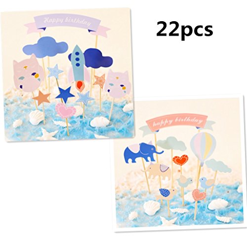 Sharlity 22pcs Mixed Owls and Elephants Cake Cupcake Decorative Cupcake Topper for Kids Birthday Party Themed Party Baby Shower